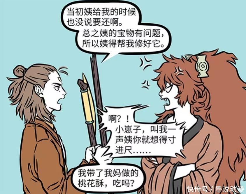 杨戬还有理,示意西王母当初莫得说要还,他还耍恶棍,非要说是西王母的宝物有问题。不论如何西王母皆要帮衬建树开山斧。这技艺西王母就不悦了,就因为一声“姨”,西王母但是给了他八件宝物,咫尺还得寸进尺。不外杨戬带了母亲云花作念的桃花酥,还问西王母吃吗?