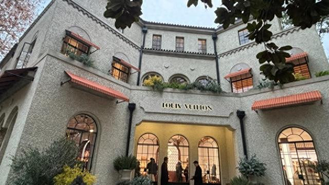 徐汇区武康路40弄1号,一幢百余年历史的西班牙格调老洋房前戎行弯曲——路易威登择此开出一家限时18天的主题“旅店”。